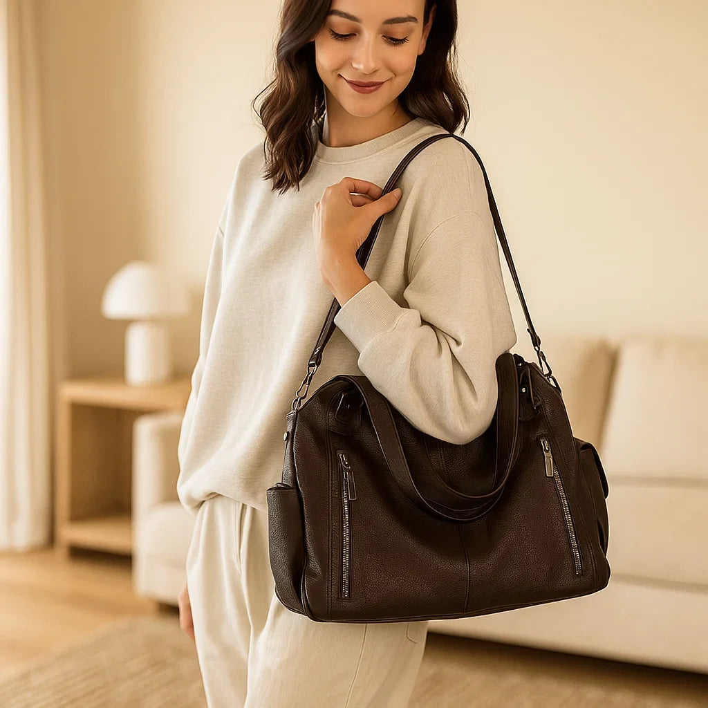 De ruime schoudertas voor dames combineert een modern design met optimale functionaliteit. Of je nu naar school, universiteit of werk gaat – deze tas biedt meer dan genoeg ruimte voor boeken, een laptop en al je dagelijkse essentials. Alles blijft netjes georganiseerd, terwijl jij geniet van comfort én een stijlvolle uitstraling.